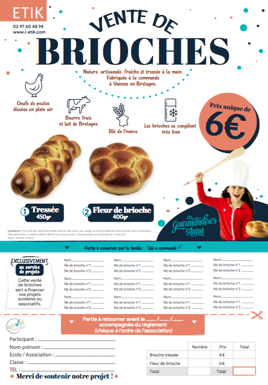 Cette année nous mettons en place une vente de Brioches pour financer l'achat de matériels.